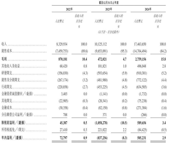 江波龙电子2022年、2023年、2024年年内盈利分别为7280万元、-8.37亿元、5.05亿元;年内盈利率分别为0.9%、-8.3%、2.9%。