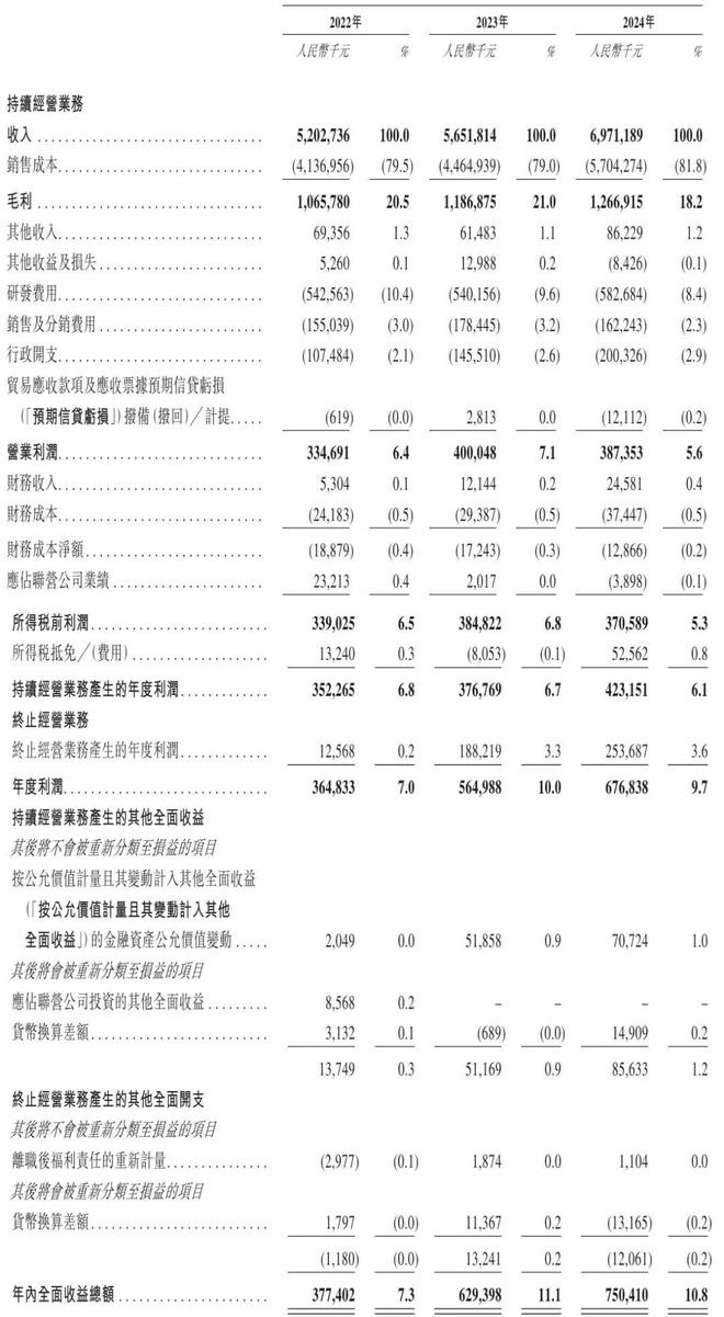 招股书显示,广和通2022年、2023年、2024年营收分别为52亿元、56.52亿元、69.71亿元;毛利分别为10.66亿、11.87亿元、12.67亿元;毛利率分别为20.5%、21%、18.2%。