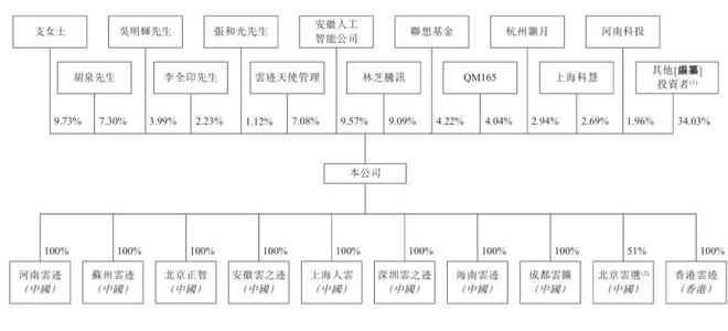 科大讯飞持股的安徽人工智能公司持股9.57%,朱子刚持股为2.07%,澜亭持股为3.29%,腾讯持股为9.09%,茂迹持股为4.06%,上海科慧持股为2.69%,光控众盈持股为2.01%,海银持股为1.83%,沸点持股为10.7%;