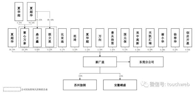 IPO后,夏超华持股为42.44%,聚心万泰持股为18.44%,比亚迪持股为3.13%,范琦、夏华超分别持股为2.5%,万向持股为1.88%,景从投资持股为1.25%,鼎立鑫持股为0.61%,国元保持股为0.56%;