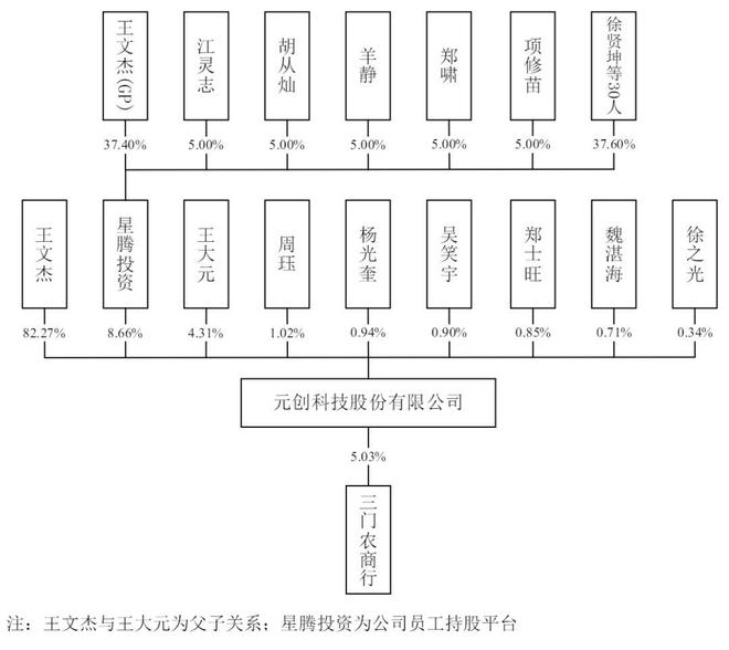 IPO后,王文杰直接持股为61.70%,星腾投资持股为6.49%,王大元直接持股为3.24%,周珏持股为0.77%;