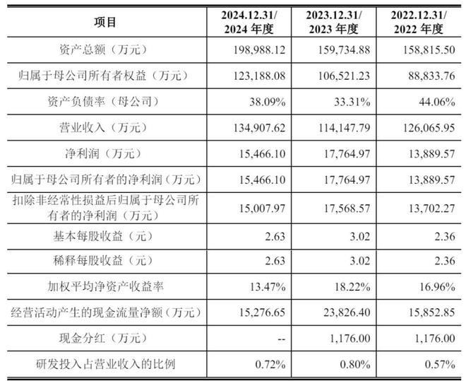 元创科技2022年、2023年、2024年营收分别为12.6亿元、11.4亿元、13.5亿元;净利分别为1.39亿元、1.78亿元、1.55亿元;扣非后净利分别为1.37亿元、1.76亿元、1.5亿元。