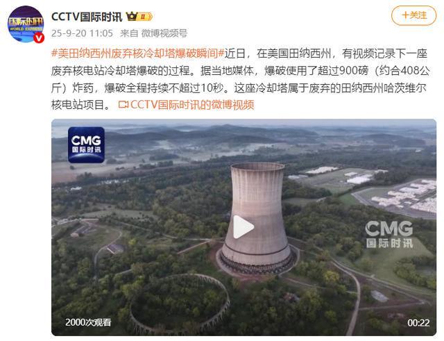 近日,在美国田纳西州,有视频记录下一座废弃核电站冷却塔爆破的过程。据当地媒体,爆破使用了超过900磅(约合408公斤)炸药,爆破全程持续不超过10秒。这座冷却塔属于废弃的田纳西州哈茨维尔核电站项目。