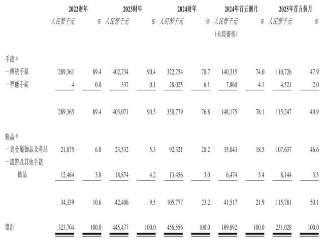 西普尼精密收入主要来自手表和饰品两个板块。西普尼精密2025年前5个月来自传统手表的营收为1.15亿元,占营收的比例为49.9%;来自贵金属饰品及产品收入为1.08亿元,占比为46.6%。