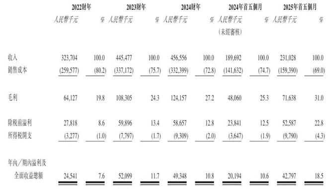 招股书显示,西普尼精密2022年、2023年、2024年营收分别为3.24亿、4.45亿、4.57亿元;毛利分别为6413万元、1.08亿元、1.24亿元;毛利率分别为19.8%、24.3%、27.2%;期内利润分别为2454万元、5210万元、4935万元;期内利润率分别为7.6%、11.7%、10.8%。