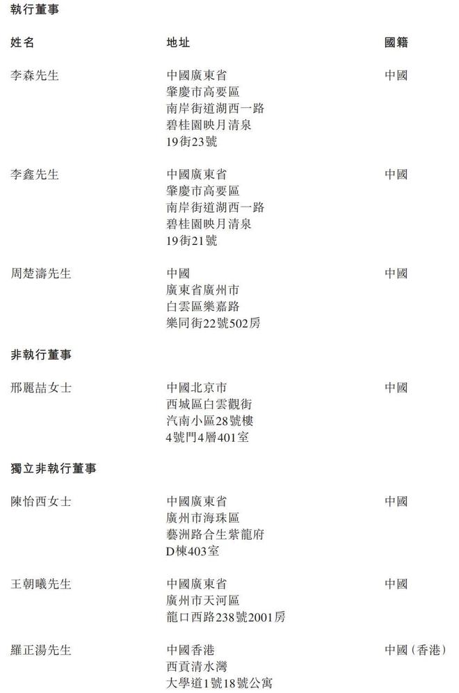 金晟新能源执行董事分别为李森、李鑫、周楚涛;非执行董事为邢丽喆女士,独立非执行董事分别为陈怡西女士、王朝曦、罗正汤。