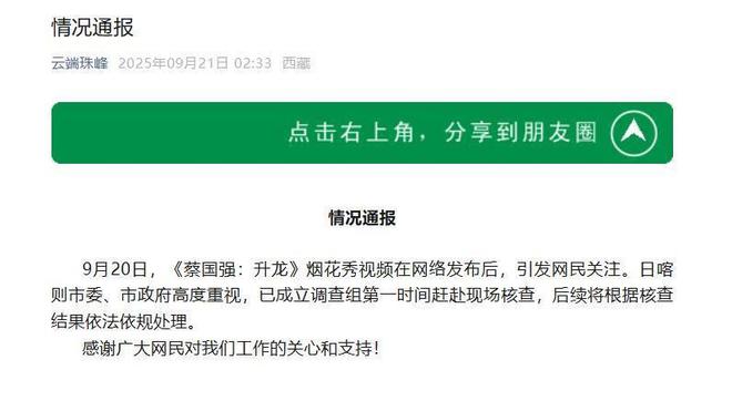 同日,日喀则也发布情况通报称,日喀则市委、市政府高度重视,已成立调查组第一时间赶赴现场核查,后续将根据核查结果依法依规处理。