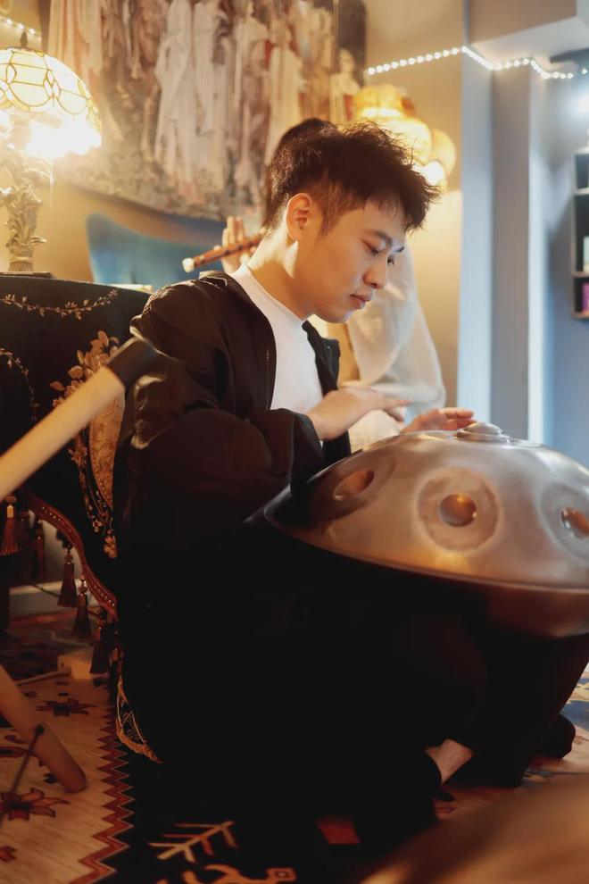 悦铭在演奏手碟,和中国传统乐器即兴碰撞。本文图/受访者提供