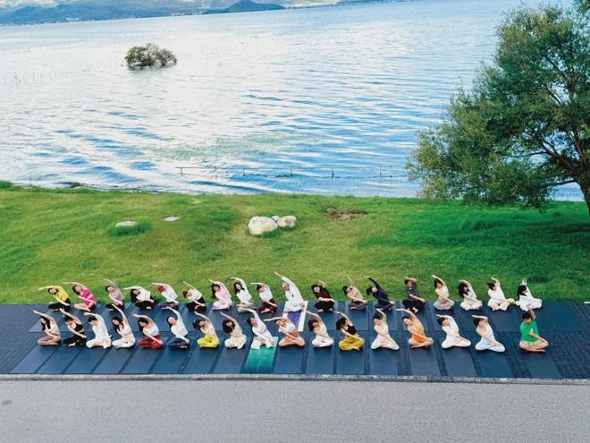 苏仪带领小愈悦冥想营成员团体在大理做呼吸、冥想、疗愈。