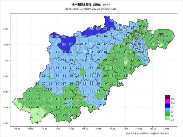 明天(24日),还有冷空气南下影响,和台风外围环流共同影响,沿海和浙西北地区部分有中到大雨局部暴雨,温台和天目山区个别大暴雨。