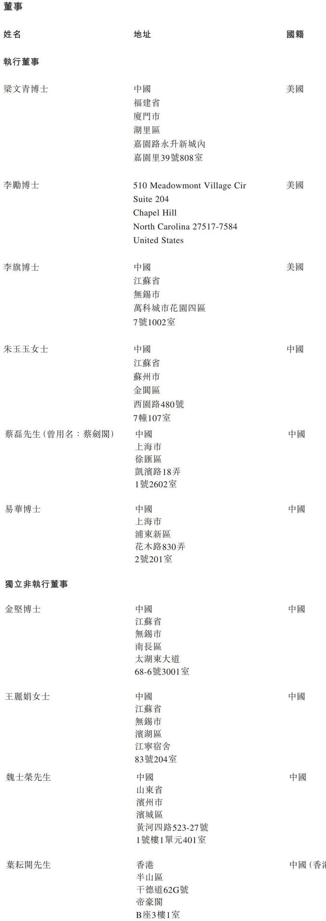 长风药业董事分别为梁文青博士、李励博士、李旗博士、朱玉玉女士;非执行董事分别为陈鹏辉、蔡磊先生(曾用名:蔡剑阁)、易华博士;独立非执行董事分别为金坚博士、王丽娟女士、魏士荣、叶耘开。