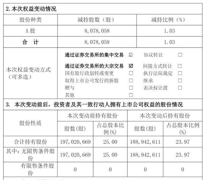 联想控股为公司5%以上股东,本次权益变动后,联想控股权益比例由25.00%下降至23.97%,达到1%的整数倍。