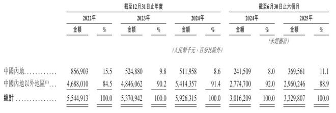 从收入构成的区域来看,晶晨半导体2025年上半年中国内地收入为3.7亿元,占营收的比例为11.1%;来自中国内地以外地区收入为29.6亿元,占营收的比例为88.9%。