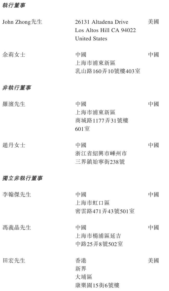 晶晨半导体执行董事分别为John Zhong、余莉女士;非执行董事分别为罗滨、赵丹女士;独立非执行董事分别为李翰杰、冯义晶、田宏。