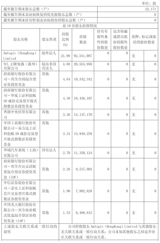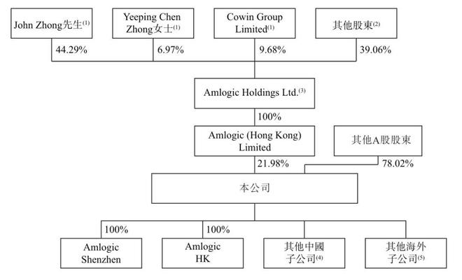 截至2025年6月30日,Amlogic(HongKong)持股为21.98%,Amlogic大股东为John Zhong,John Zhong持股为44.29%,Yeeping Chen Zhong女士持股6.97%,Cowin Group Limited持股9.68%,Cowin Group Limited由陈海涛(Yeeping Chen Zhong女士的父亲)全资拥有。Yeeping Chen Zhong女士与John Zhong为夫妻关系。