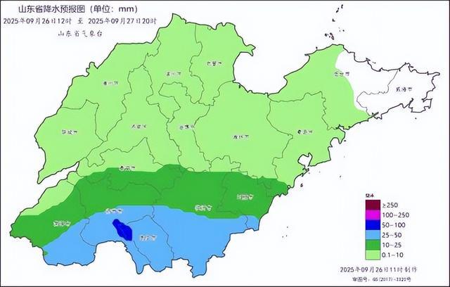 受冷空气和副高边缘西南暖湿气流共同影响,预计26日下午到28日,我省有一次降雨过程,鲁南地区雨量较大,降雨主要集中在26日夜间到27日夜间。全省平均降水量15~30毫米,其中,菏泽、济宁、枣庄、临沂和日照30~40毫米局部60~100毫米;聊城南部、泰安、济南南部、淄博南部、潍坊南部、烟台南部和青岛10~20毫米局部25毫米以上;其他地区1~10毫米。最大小时降水量10~30毫米。
