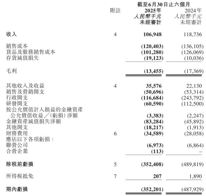 重塑能源2025年上半年期内亏损为3.52亿元,上年同期的期内亏损为4.88亿元。