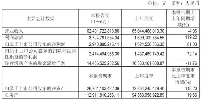 赛力斯2025年上半年净利29.41亿元,较上年同期的16.25亿元增长81%;扣非后净利为24.74亿元,较上年同期的14.37亿元增长72.14%。