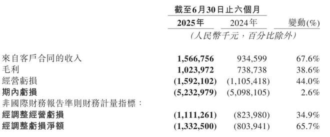 财报显示, 地平线2025年上半年营收为15.67亿元,较上年同期的9.35亿元增长67.6%。