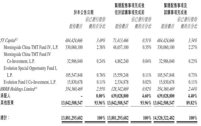 此次交易前,五源资本持股为3.49%,高瓴持股为2.55%;此次交易后,五源资本持股为3.34%,高瓴持股为2.44%。