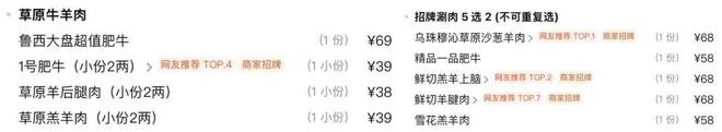 大多涮肉店是肥牛肥羊都有的|图源:大众点评@百年前门铜锅涮肉(前门总店);@八爷涮肉(王府井·故宫店)