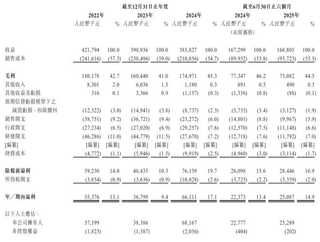 华付技术2022年、2023年、2024年期内利润分别为5538万元、3678万元、6611万元;期内利润率分别为13.1%、9.4%、17.1%。