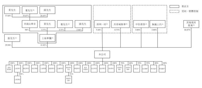 IPO前,张欢持股为29.94%,上海华忏持股为11.02%,一共持股为40.96%。