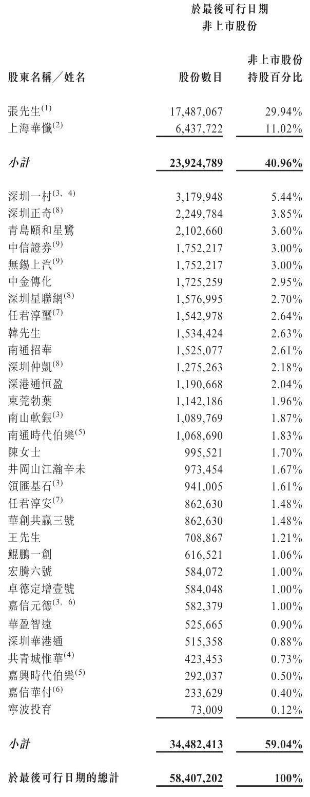 深圳一村持股为5.44%,深圳正奇持股为3.85%,青岛颐和星鹭持股为3.6%,中信证券、无锡上汽分别持股为3%,中金传化持股为2.95%,深圳星联网持股为2.7%,任君淳玺持股为2.64%,韩国安持股为2.63%,南通招华持股为2.61%,深圳仲凯持股为2.18%;