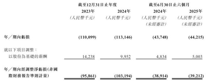 滨会生物2023年、2024年期内亏损分别为9586万元、1.04亿元;2025年上半年经调整净亏损为3921万元,上年同期的经调整净亏损为3891万元。