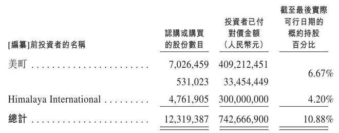 美町与自然堂于2024年10月23日订立股份认购协议并于2025年9月8日对其进行补充,据此,美町按每股股份约58元认购7,026,459股股份,对价总额为4.09亿元,已于2025年9月26日不可撤销地结清。