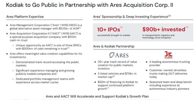 Kodiak创始人兼首席执行官Don Burnette表示, “随着我们与AACT的拟议业务合并以及Kodiak上市推进,我们整个团队将继续专注于执行我们的战略,以扩大业务规模并加速增长。我们期待引领商用卡车运输和公共部门行业的发展,并抓住未来激动人心的价值创造机遇,造福客户和股东。”