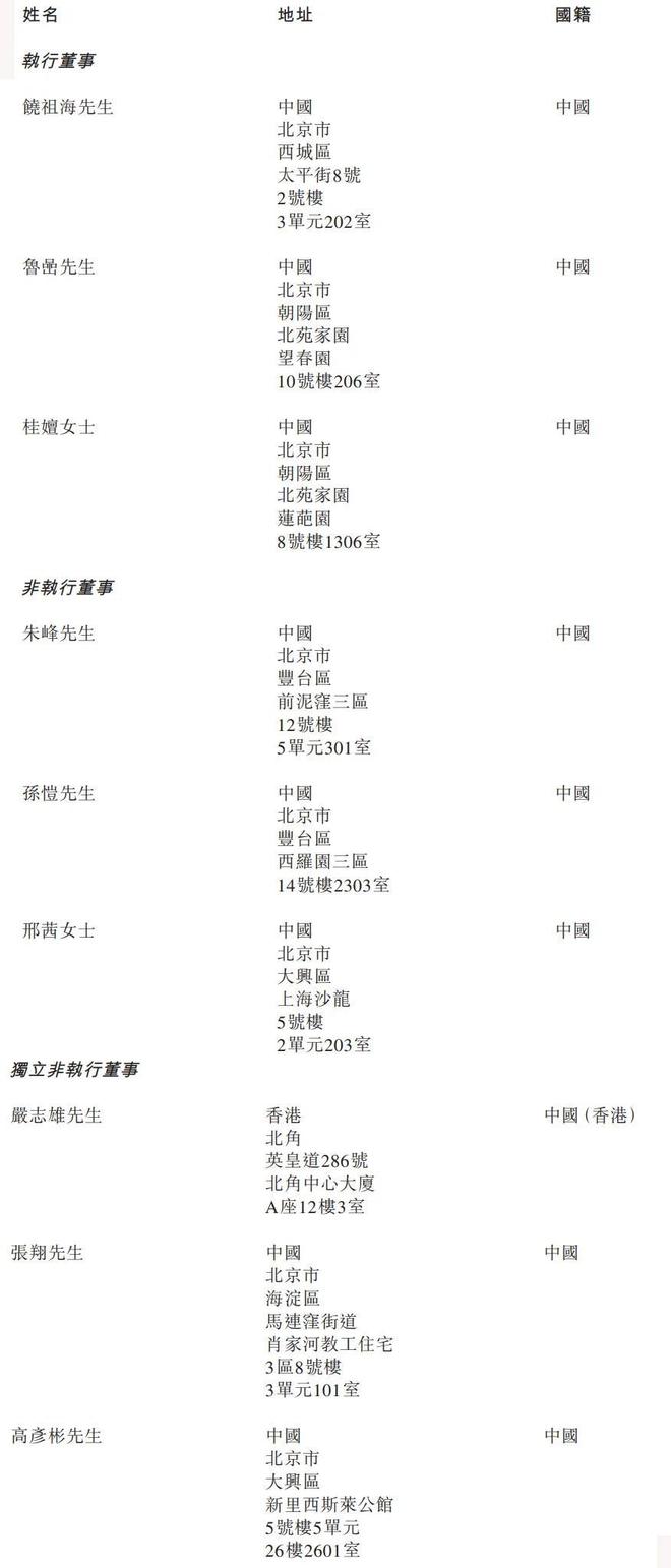 同仁堂医养执行董事分别为饶祖海、鲁喦、桂嬗女士;非执行董事分别为朱峰、孙恺、邢茜女士;独立非执行董事分别为严志雄、张翔、高彦彬。