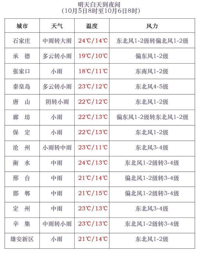 明天夜间到6日,全省阴有小雨,其中张家口南部和保定、廊坊及以南地区有中到大雨,个别地点有暴雨。
