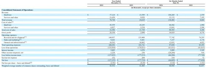 Cerebras在2024年上半年营收为1.36亿美元,上年同期的营收为866万美元;毛利为5602万美元,上年同期的毛利为438万美元;运营亏损为4181万美元,上年同期的运营亏损为8102万美元;净亏损为6661万美元,上年同期的净亏损为7782万美元。