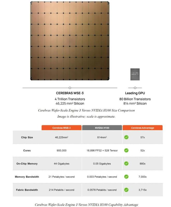2024年3月,Cerebras通过推出Wafer Scale Engine 3,基于5nm、拥有4万亿个晶体管的 WSE-3 专为训练业界最大的AI模型而打造,为Cerebras CS-3 AI超级计算机提供动力,通过900,000 个 AI 优化计算核心提供125 petaflops的峰值AI性能。