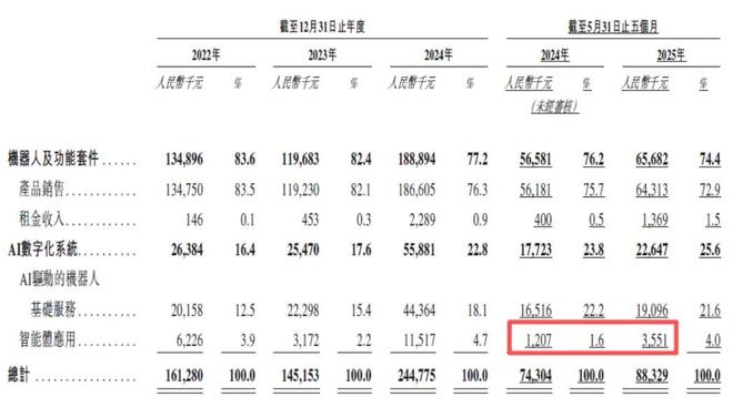 除传统的酒店场景外,云迹科技2025年前5个月在技术、医疗、工厂场景也取得进展;其中,来自技术领域的收入为83.6万元,上年同期为45万元;来自医疗机构领域的收入为105万元,上年同期为93.4万元;来自工厂领域的收入为55.5万元,上年同期为29.7万元。