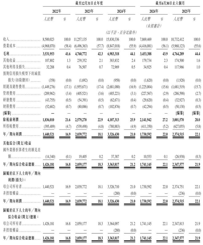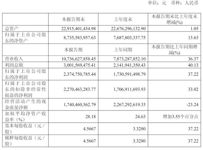 东鹏饮料2025年上半年归属于上市公司股东的净利润为23.75亿元,较上年同期的17.31亿元增长37.22%;扣非后净利为22.7亿元,较上年同期的17.07亿元增长33%。