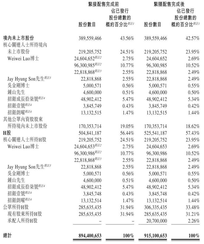 配售股份分别占本公告日期已发行H股及已发行股份总数的约4.10%及约2.31%,且分别占经配发及发行配售股份扩大后的H股及已发行股份总数的约3.94%及约2.26%。