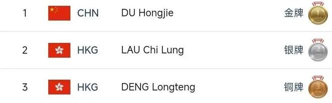 中国选手杜洪杰以9.786分夺得金牌,为中国代表队赢得本届世锦赛首金。中国香港选手刘子龙以9.760分获得银牌,另一名中国香港选手邓龙腾以9.746分摘得铜牌。