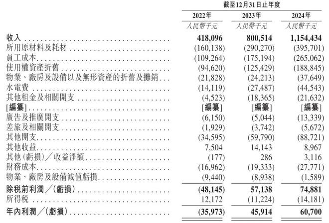 招股书显示,遇见小面2022年、2023年、2024年营收分别为4.18亿元、8亿元、11.54亿元;年内利润分别为-3597万元、4591万元、6070万元。