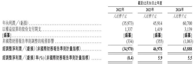 遇见小面2022年、2023年、2024年经调整净利分别为-3497万元、4698万元、6389万元;经调整净利率分别为-8.4%、5.9%、5.5%。