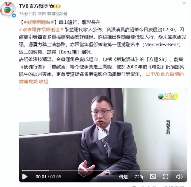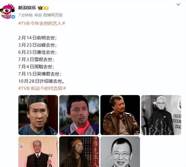 众星发文悼念TVB演员许绍雄,今年已有七位艺人离世纪念欢喜哥许绍雄逝世。
