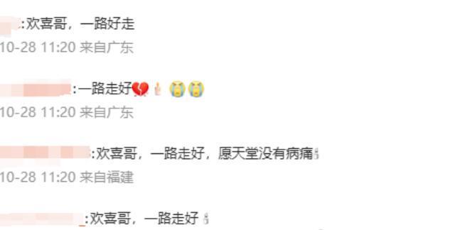 在许绍雄的微博下,众多网友留言悼念:欢喜哥,一路走好。