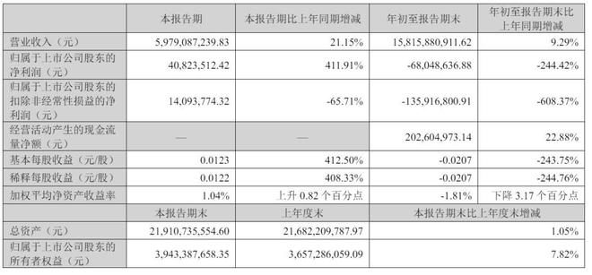 欧菲光第三季度营收达到59.79亿元,同比增长21%,但扣非后净利润仅为1409万元,同比下降66%,尽管营收增长表现强劲,但公司净利润下滑明显,反映出公司在运营和盈利方面可能面临一定压力和挑战,需要进一步关注其后续业绩及经营策略调整情况。
