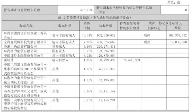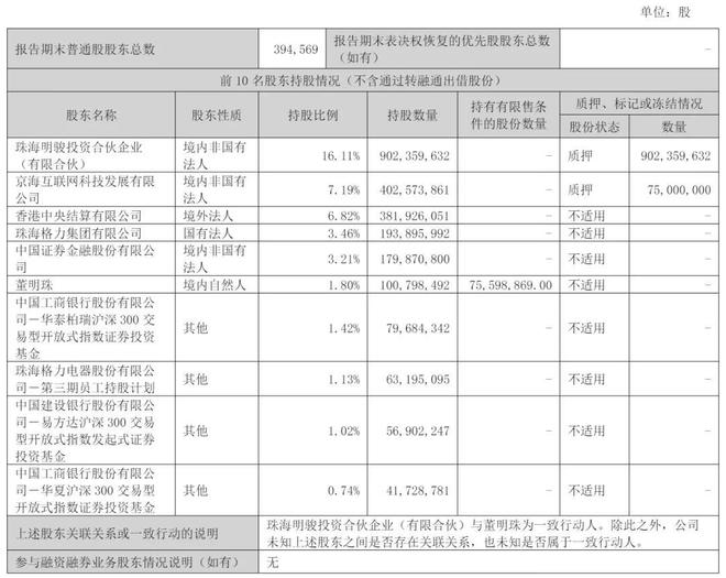 截至2025年9月30日,高瓴旗下珠海明骏投资合伙企业(有限合伙)持股为16.11%,京海互联网科技发展有限公司持股为7.83%,香港中央结算有限公司持股为3.93%,珠海格力集团有限公司持股为3.46%,中国证券金融股份有限公司持股为3.21%;
