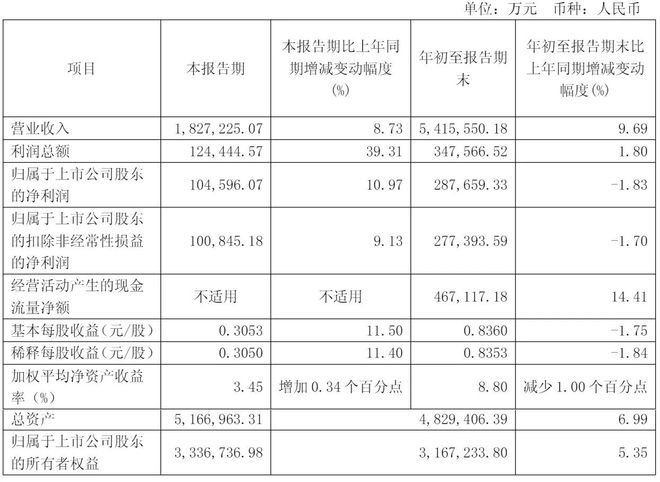圆通2025年第三季度营收为182.72亿元,同比增长8.73%;净利为10.46亿元,同比增长11%;扣非后净利为10.08亿元,同比增长9.13%。