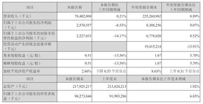 顺丰控股2025年第三季度营收为784亿元,同比增长8.21%;净利为25.71亿元,同比下降8.53%;扣非后净利为22.27亿元,同比下降14.17%。