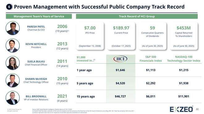 IPO后,HCI集团将保留81.5%股份,Paresh Patel持股为6.73%,Kevin Mitchell持股为1.83%。