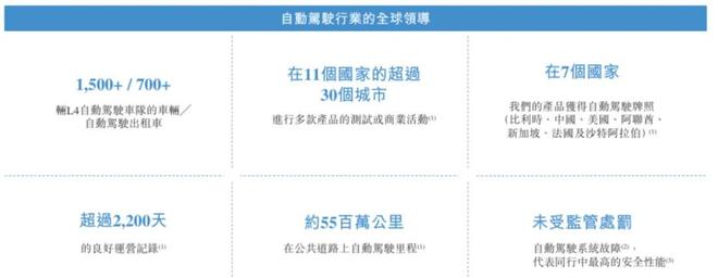 文远知行已拥有超过2,200天的良好运营记录,在公共道路上自动驾驶的里程约5,500万公里。文远知行计划在2030年前部署数万台Robotaxi。