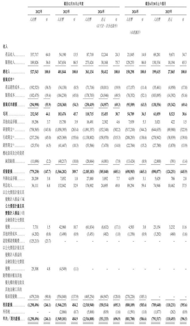招股书显示,文远知行2022年、2023年、2024年营收分别为5.28亿元、4.02亿元、3.61亿元;2025年上半年营收2.00亿元,较上年同期的1.5亿元增长33.3%。